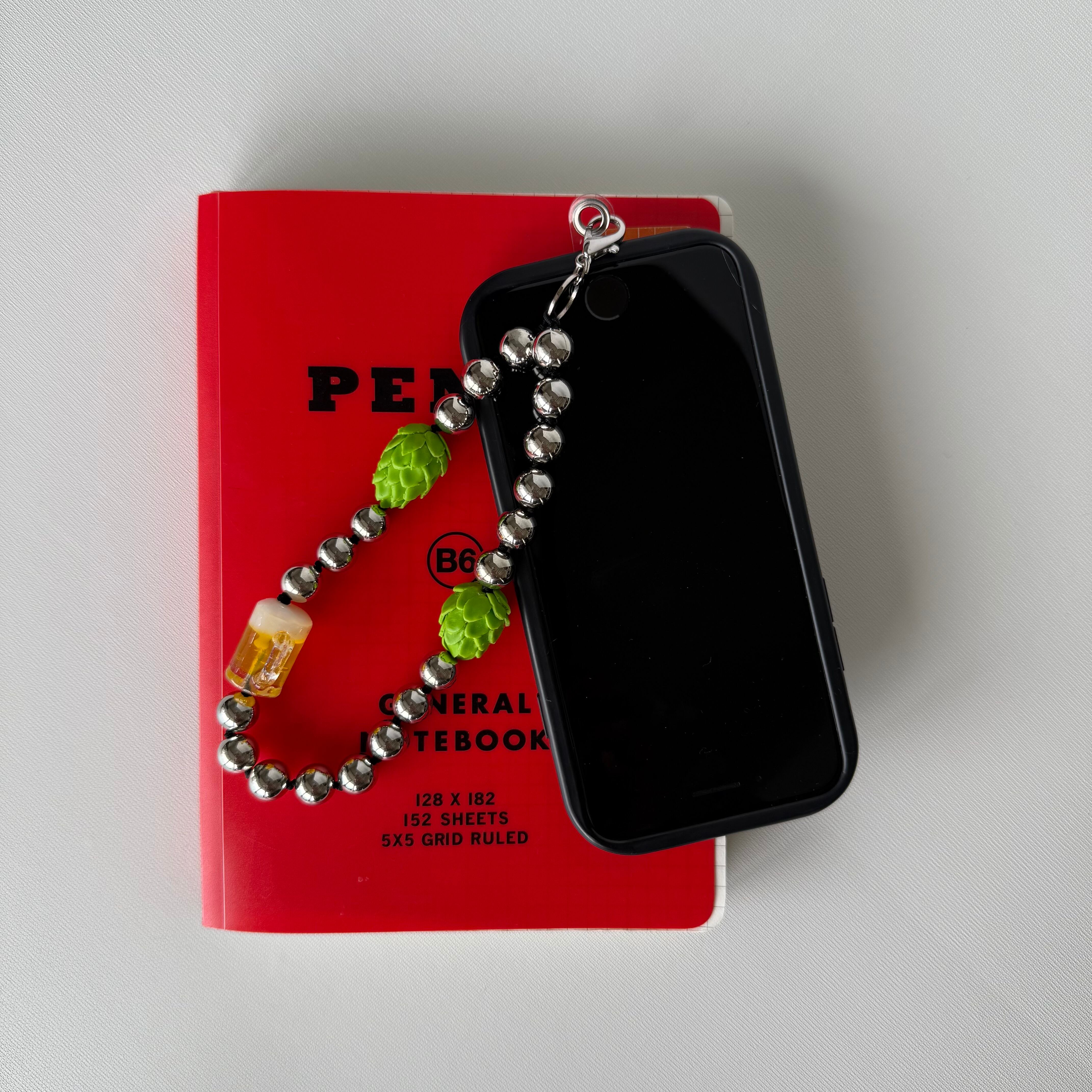 シルバービーズでエッジを効かせたクールなハンドストラップです。
