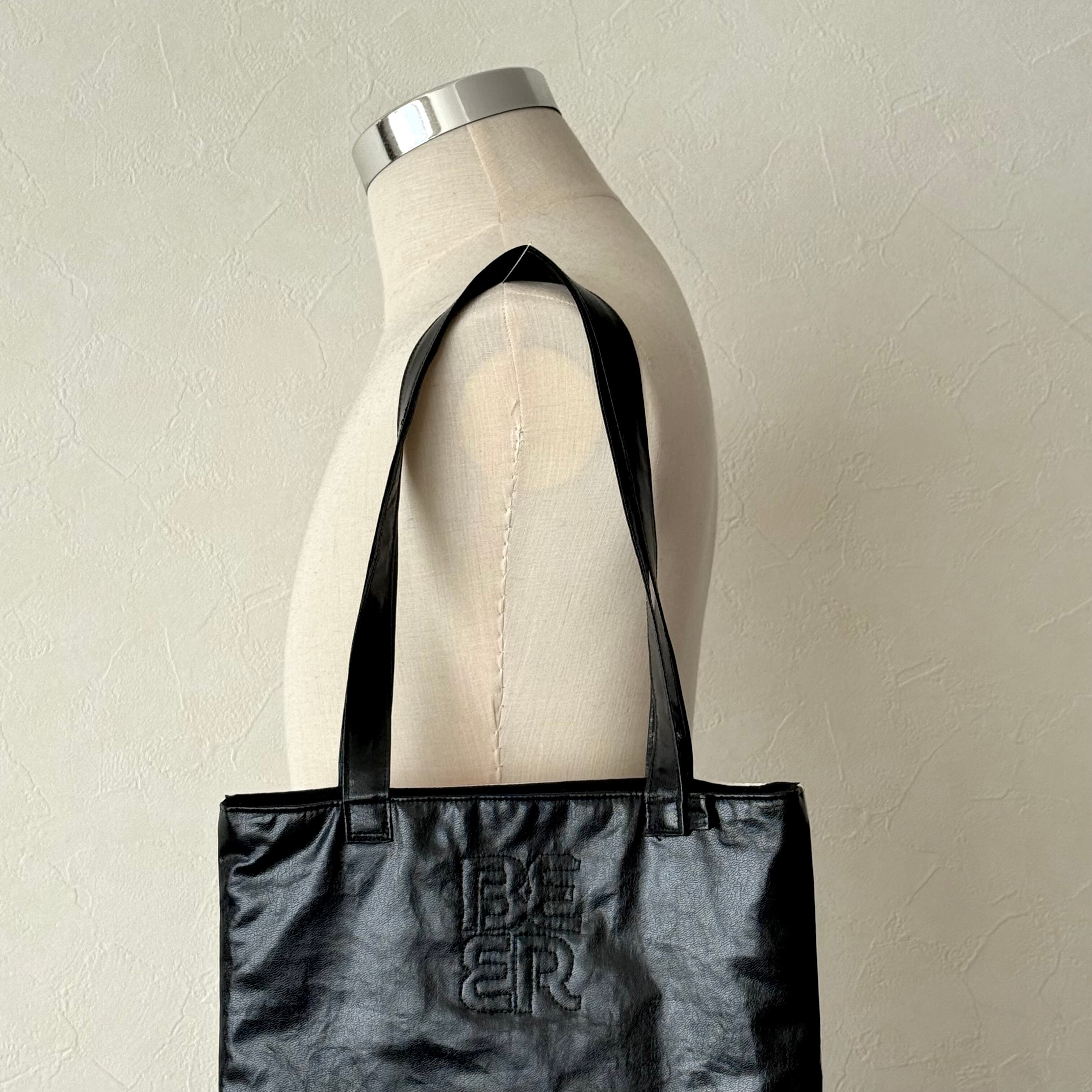 表はブラックでツヤ感のある合皮ででシンプルに。